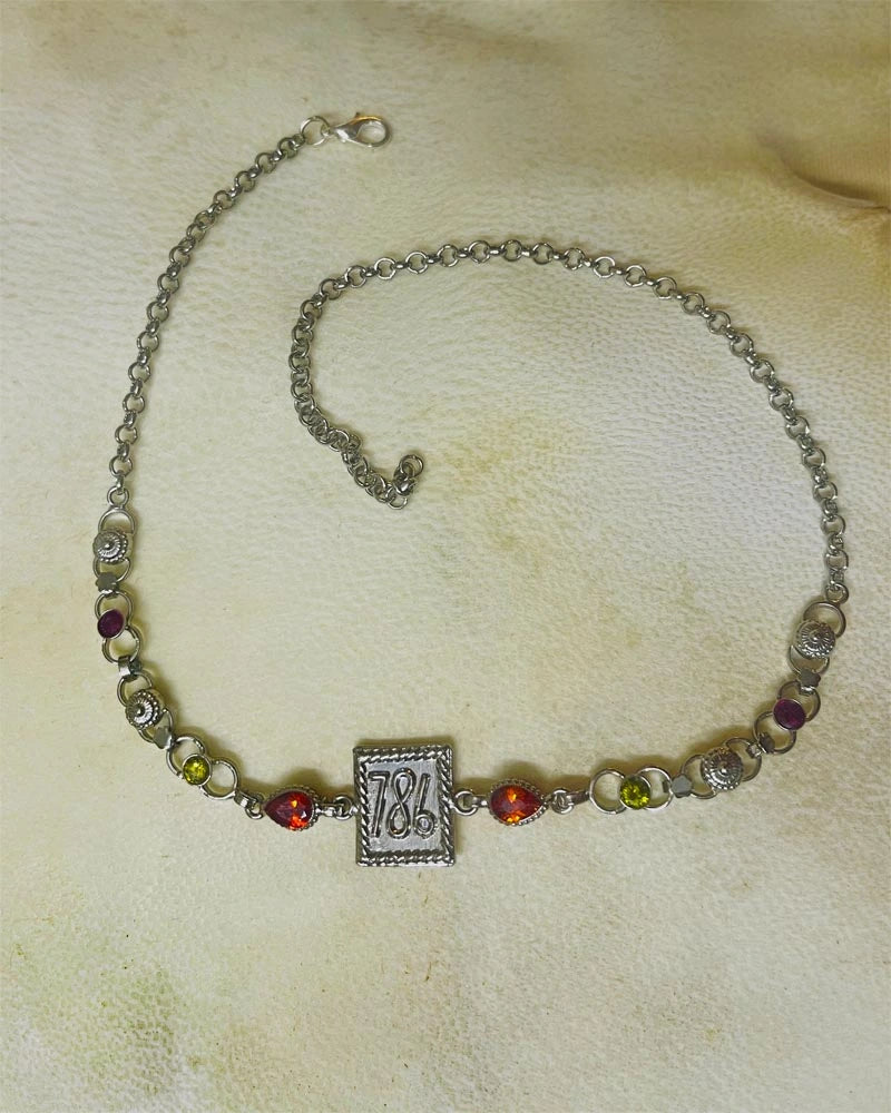 Introducing our "786 Bracelet Neckpiece," a fusion of cultural significance and contemporary elegance. Handcrafted with care, this unique piece features nickel plating on brass adorned with shimmering zircons.