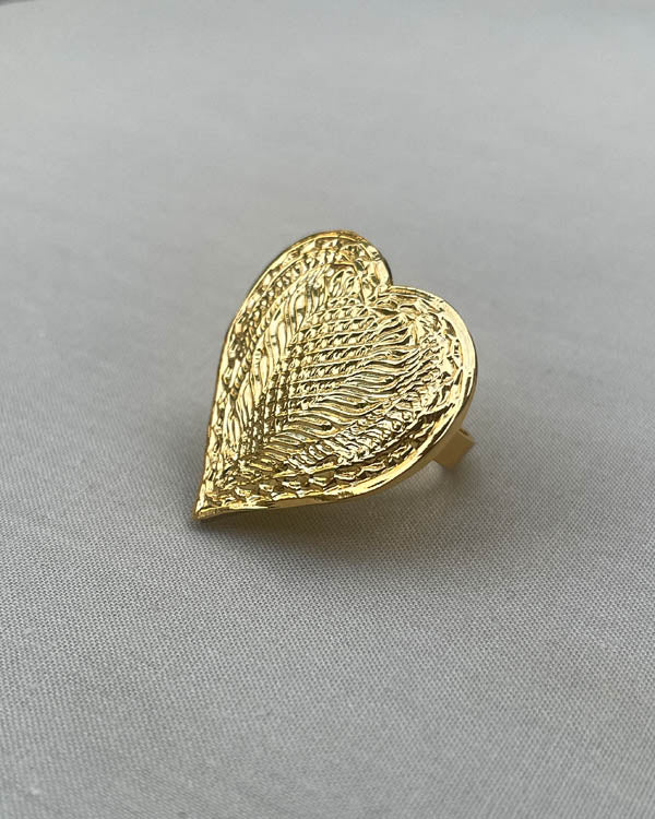 Dil (heart) ring features a hand-stamped heart with an adjustable ring bnd. Available in two finishes - gold and silver.
