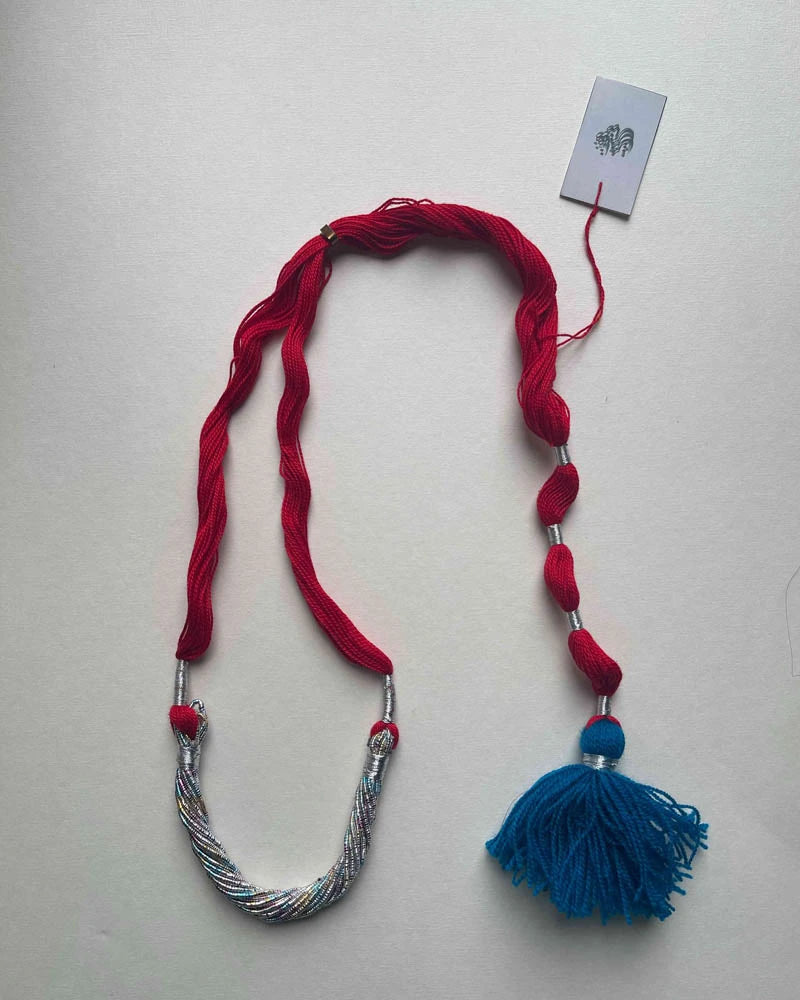 'Gucchi' meaning 'bundle,' is a true celebration of threads. Carefully handcrafted, the threads are intricately curved to form a stunning centerpiece at the front, complemented by a playful dori at the back. Minimal yet artistic!